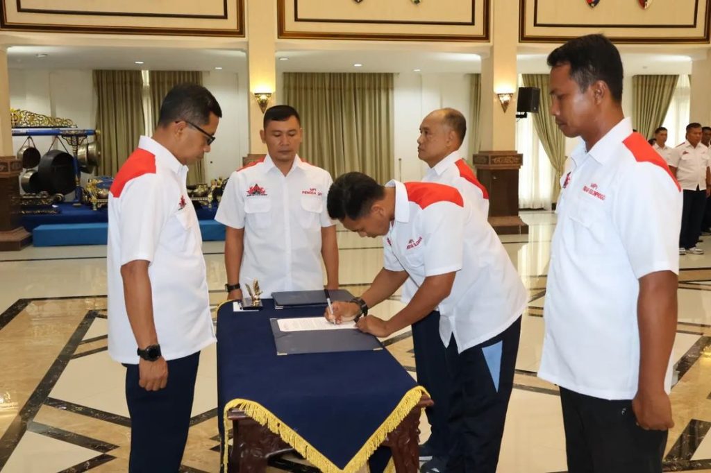 (Pen-AAU) Wakil Gubernur Akademi Angkatan Udara Marsma TNI Hendro Arief H., S.Sos.,M.Han., sebagai Exofficio Ketua Umum Modern Pentathlon Indonesia (MPI) Pengda DIY , mengukuhkan kepengurusan baru Kabupaten, Modern Pentathlon Daerah Istimewa Yogyakarta, di Gedung Sabang Merauke, Jumat ( 5/4/2024).